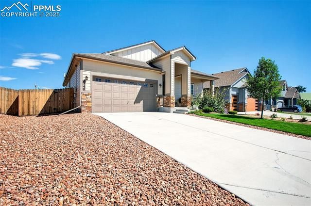 WELCOME HOME to this show-stopping 5 bed, 3 bath rancher in the sought-after Glen at Widefield. Built in 2021, this home isn’t just move-in ready, it’s been thoughtfully upgraded inside and out to give you the lifestyle you’ve been dreaming of. From the moment you arrive, the curb appeal speaks for itself: fresh custom landscaping, charming covered front porch, and a backyard designed for both relaxation and adventure. Step through your private back gate and you’re instantly greeted with trails and open space with sweeping mountain views. Inside, the bright open-concept floor plan and Pikes Peak views from nearly every window will steal your heart. The chef’s kitchen is the centerpiece, with a massive island, gas stove, stainless steel appliances, and elegant granite counters that make cooking and entertaining a breeze. The spacious main level includes a sunlit living room, dining area with walk-out access, and a luxurious primary suite featuring a spa-worthy 5-piece bath and walk-in closet. The finished basement offers endless possibilities — from a rec room to a home theater to the ultimate entertaining space with wet bar/kitchenette hookups already in place. Imagine hosting family gatherings, game nights, or movie marathons in your private retreat. Two beds and a full bath grace the bottom level keeping guest privacy top of mind. Step outside to a backyard oasis: custom rock fire pit, two storage sheds for all your gear, hot tub hookups ready for relaxation, and space that feels both private and expansive. Smart-home conveniences include Ring doorbell, Ecobee smart thermostat, and paid-off solar panels for energy savings. Every detail has been thought of — soaring ceilings, main-level laundry, auto sprinklers, central A/C, and so much more. All of this, plus a quiet cul-de-sac location, just minutes from schools, parks, shopping, and military bases. This home isn’t just a place to live — it’s a lifestyle upgrade. Why settle for ordinary when you can have it all?